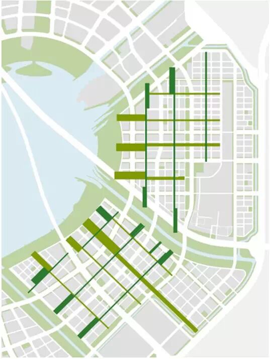 要完成海绵城市设计需要从雨洪管理要求出发,以生态廊道为骨架,配置汇水廊道、水系和海绵绿地,以重点保护对象或者高安全格局为主体,构建基本空间格局。系统设计在生态雨洪调蓄系统中一般确定三个层次的层级的雨水管理要求:三级管理区36mm/h鉴于(一年一遇);二级管理区控制45mm/h暴雨(两年一遇);一级管理区控制50mm/h暴雨(三年一遇)。各级管理区配备相应设施,构建从城市地表径流源头开始层层滞蓄、逐级消减的调蓄体系。