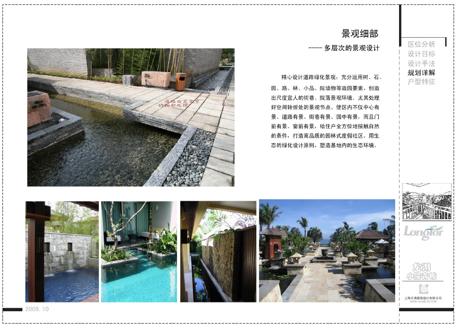 格式不统一时常发生在几个不同的排版人员之间,因为要在很短时间内要排出一套文本,但各自只关心自己的设计内容,项目主管也没有很好的统一和检查,就会导致上图出现的问题:同样都是景观的一种分析,两张图片与四周的距离不一,字体大小不一,排列方式不一。