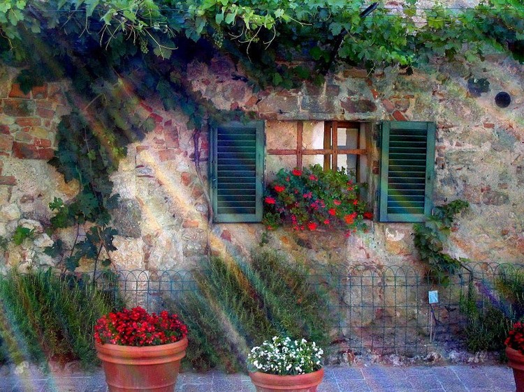 它让人想起罗密欧与朱丽叶时代……一砖一瓦,一个个的阶梯,一朵朵花,开满向日葵的阳台,洋溢着浪漫气息。