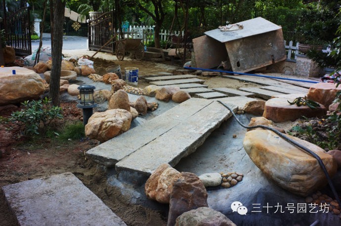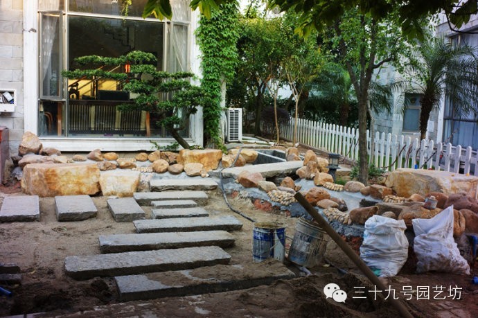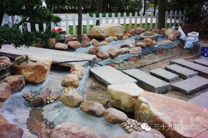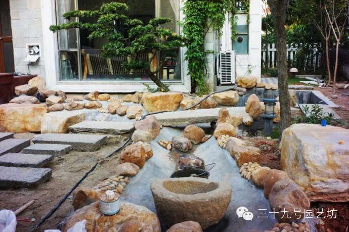 花园折腾的最新进展吧,现在看到的基本上是一堆石头,是否跟想象的很不一样呢? 那些踏脚石板和石桥,可都是内地古镇古宅改造时拆下来的,在这里继续承载岁月和历史。那个大大的圆形水钵,也是个有年份的古董,已经看不出是石头了,其实是块麻石手工凿刻出来的,将来溪水会从里面涌出来。小溪水泥面上还会铺一层鹅卵石,还会有水生植物,溪边还要填土和种上植物,到时就不会感觉那么多突兀的石头了。 继续留着些悬念吧,完成改造还需要好长一段时间呢。 窗户下面有个小假山,水会从假山中涌出来。