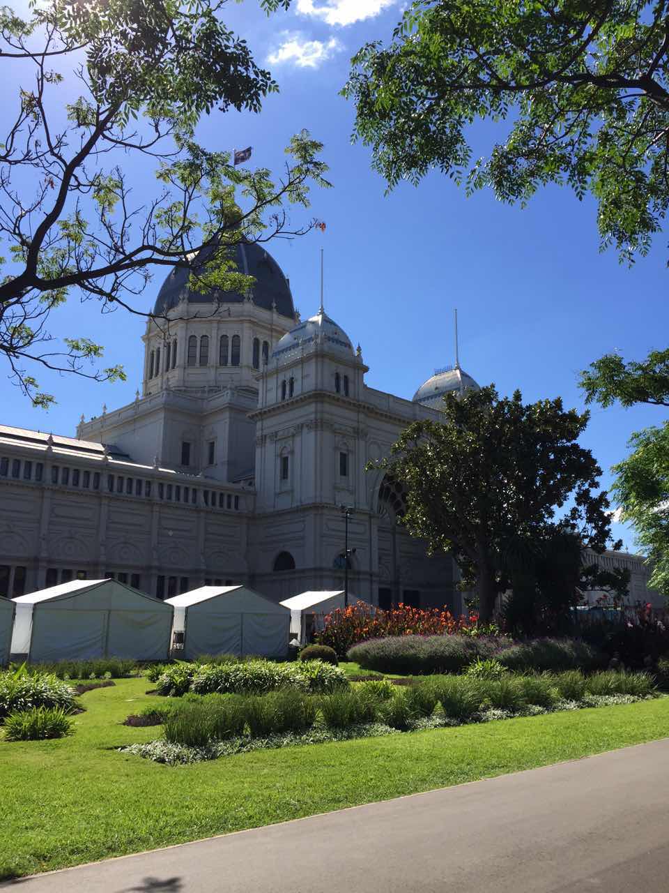 墨尔本皇家展览馆围绕着展览馆的卡顿花园(Carlton Gardens)是花展的室外展区。最吸引花友眼球的花园景观设计秀和可实现的小花园展示,还有儿童花园、花园雕塑作品展、各类盆栽花草及球茎种子等园艺产品的销售区就分布在卡顿花园的茵茵草坡上。