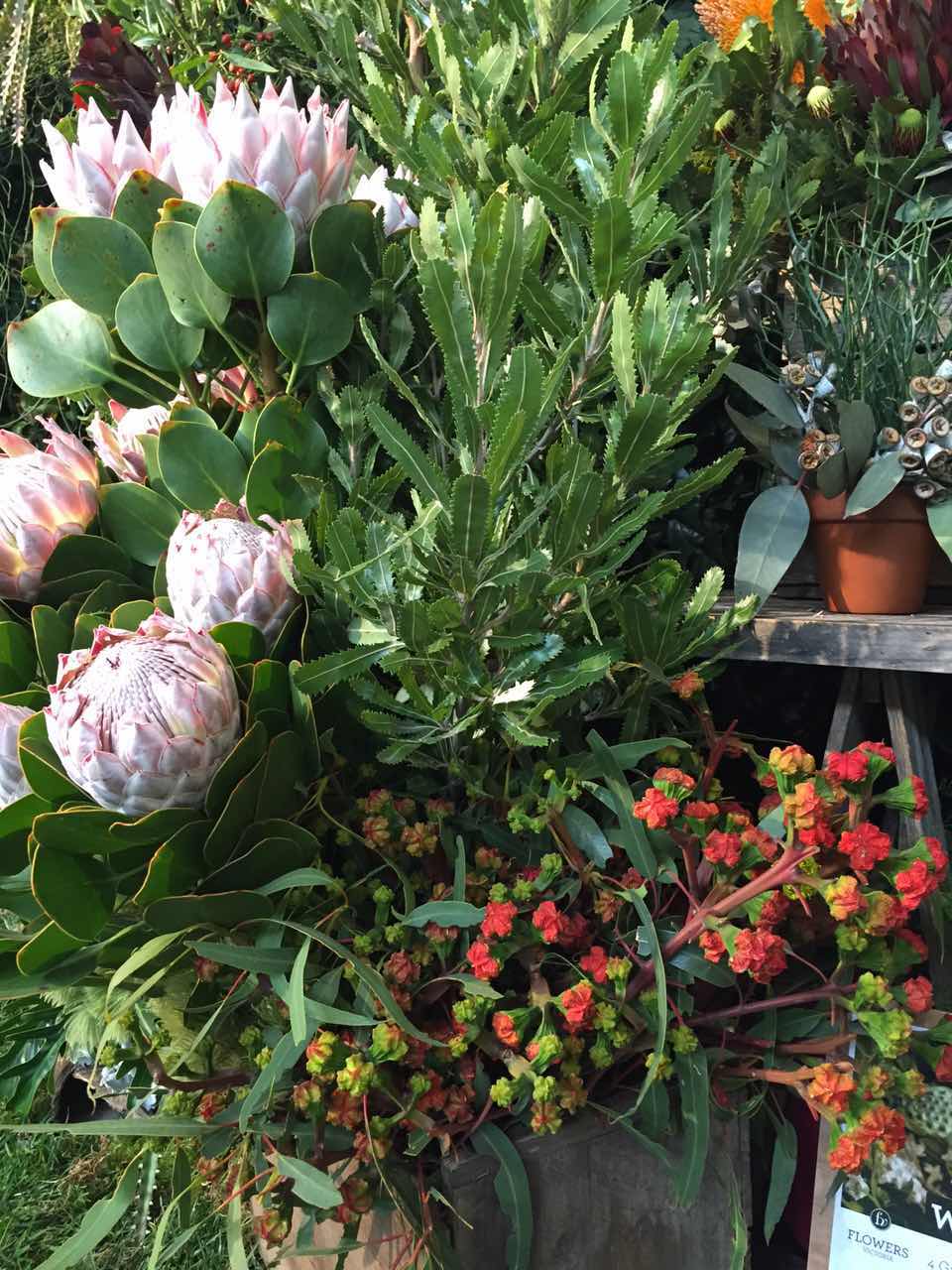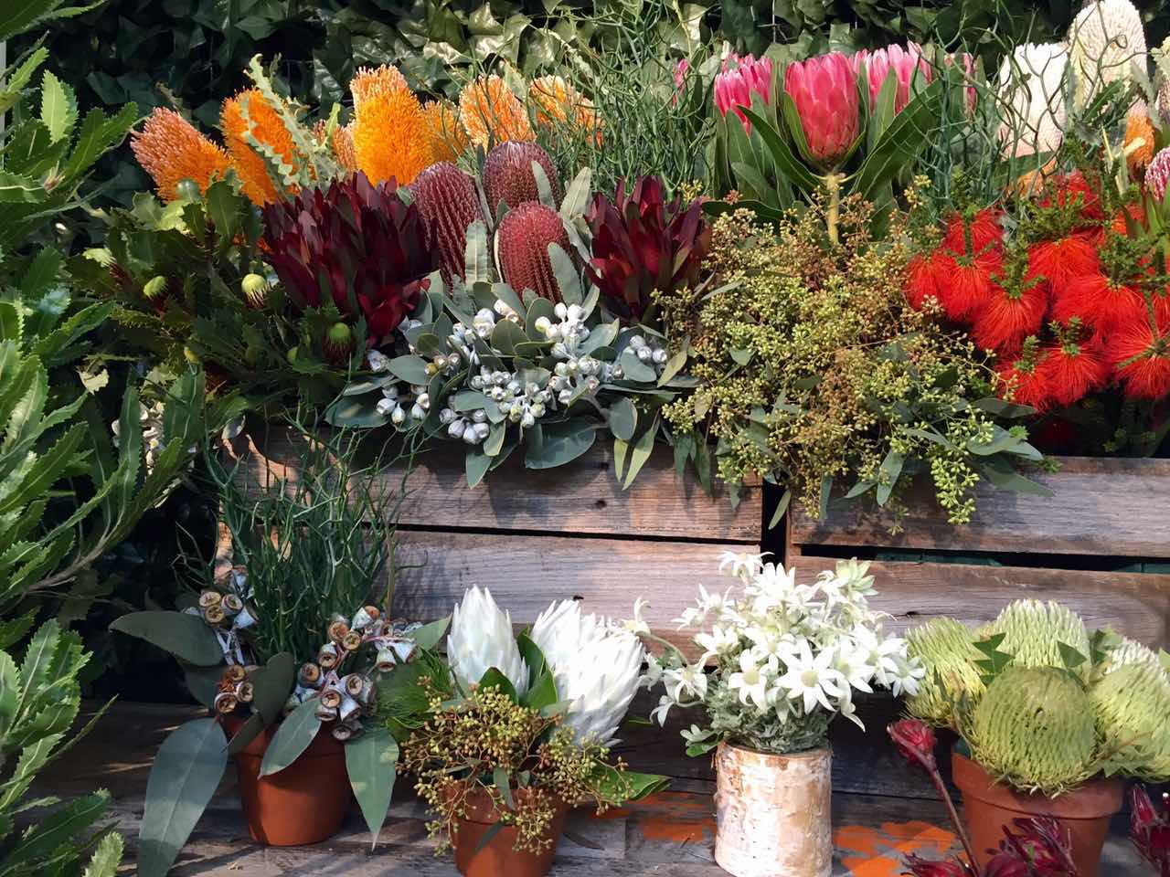 花店陈列,与街道上的咖啡馆、本土设计师品牌小店和二手书店,为墨尔本城市街道带来独特的艺文气质。花展中的花店陈列展示厅,犹如一条全是花店的街道,满满的都是美,给我们一次看个够的尽情尽兴。或许是环境的关系,我觉得展会上这些花店虽然完美,却不如路边那些带着强烈个人风格闯入眼帘的花店那么令人惊喜。当然,爱花的姑娘们是不管这些的,花儿对她们来说永远都不会够,郁金香、尤加利、帝王花、鸢尾……每一次相遇都是惊艳。她们在这里取景拍照,沉醉其中,仿佛心底那个开花店的梦想在这一刻成真了。