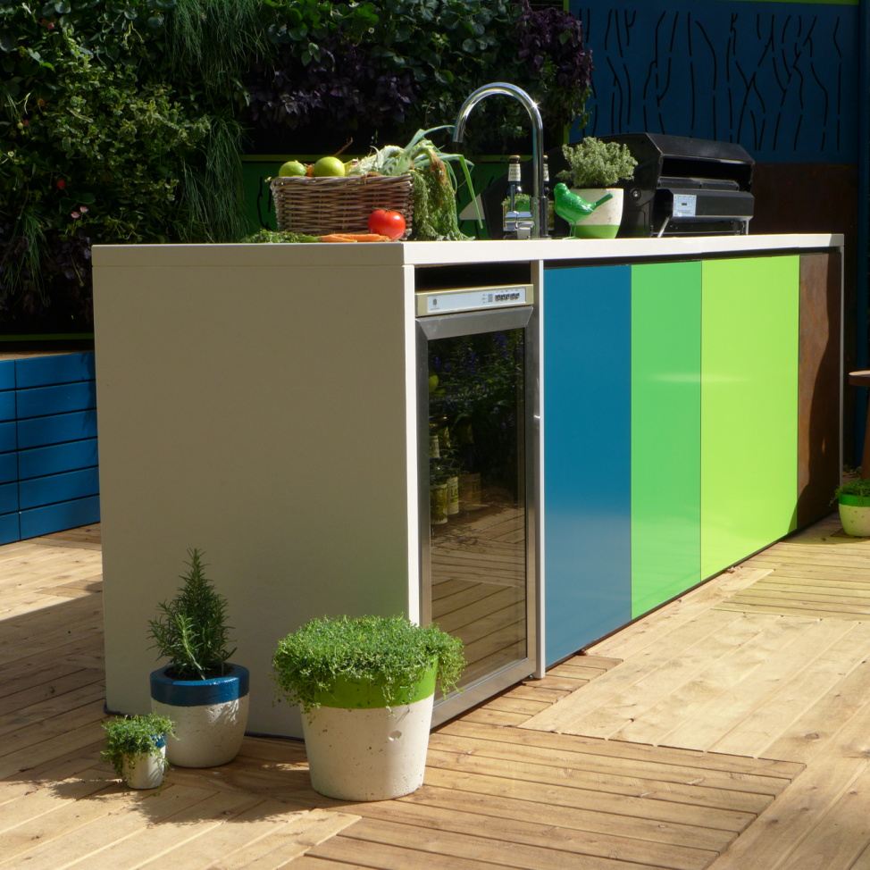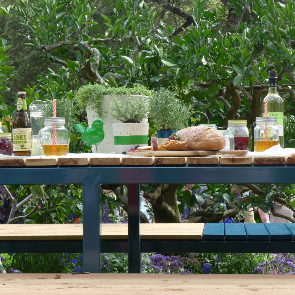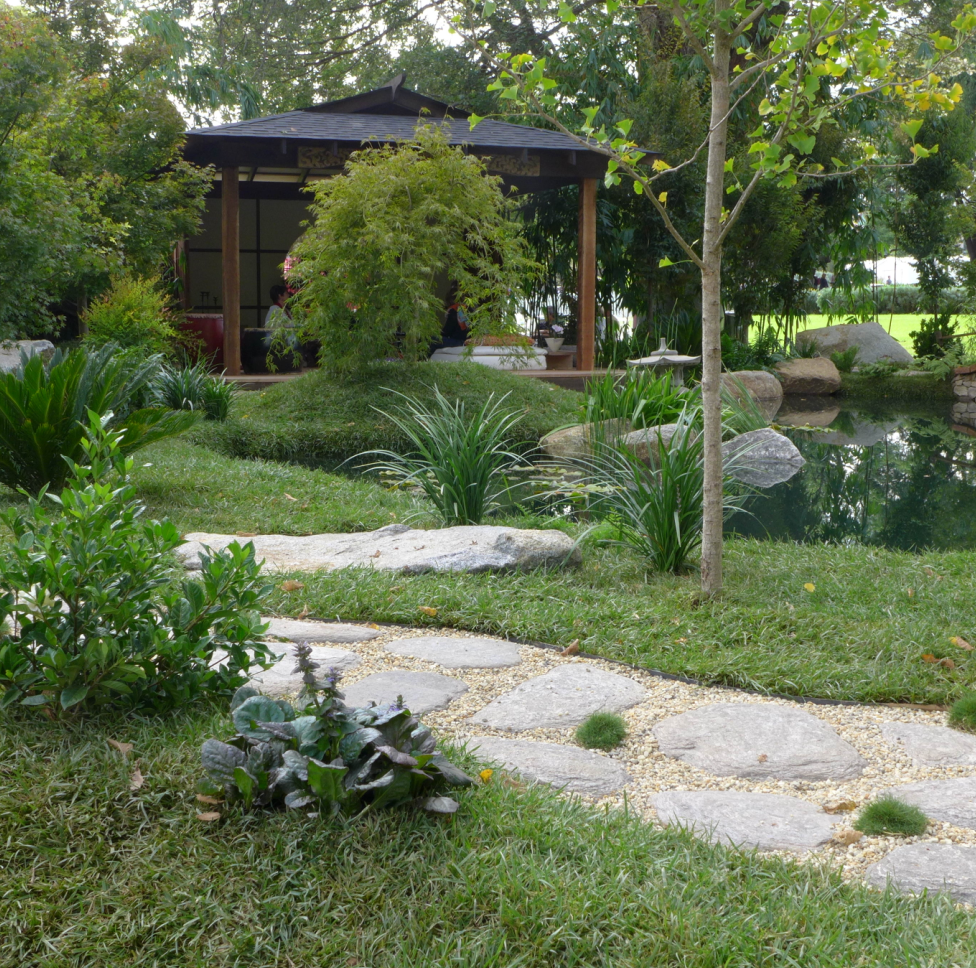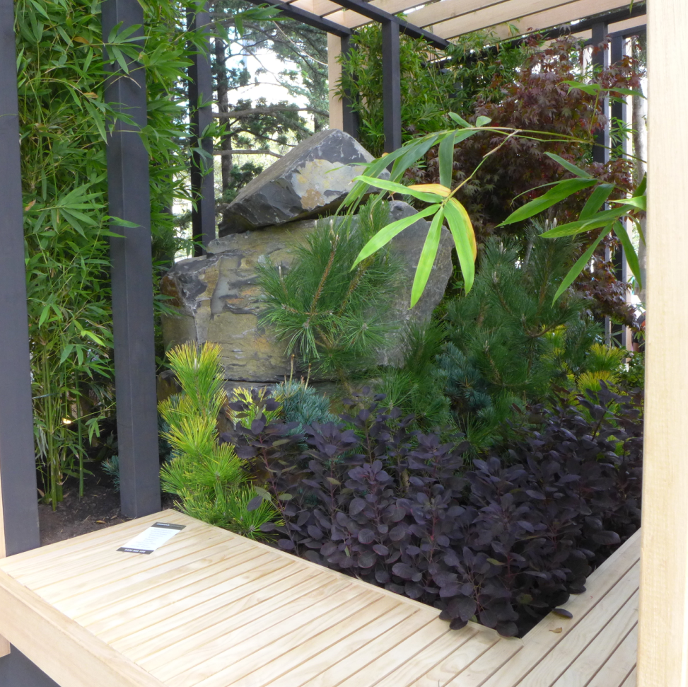 最让人期待和瞩目的环节——景观花园设计作品展。二十几个由专业设计师精心设计和打造的花园分布在展区中心道路两侧。这些花园各有姿态,错落有致地依着卡顿花园缓坡的地形,映衬着园中的大树,仿佛它们天生就存在于这儿,而不是在11天时间内搭建起来,在五天后就将永远消失的花园。Wellness Garden的设计师Christian Jenkins这样回答我们的提问:“可以说我设计和搭建这座花园只用了一个月的时间,也可以说我用一生来建造这座花园,它体现了我所有的学习、积累和感悟。”或许正因如此,在为这些花园惊艳的时候,人们也忘记了其实它们只是展品。我们看到了堪称现代花园典范的大型花园、生机勃勃的香草果蔬花园、热带风情的瀑布园、小桥流水的东方庭院……没错,它们就是真正的花园! 花园景观设计秀,体现的是近期园艺设计的主流趋势,带给园艺从业者和观众以设计理念方面的启示。这些年来,更多的花园都将园中的休憩空间作为必要元素,园艺与家居更趋融合,花园越来越生活了。今年的花展不仅在花园中看到沙发、茶几、靠垫、滑梯和取暖器,我们还在香草果蔬花园中看到了设施完整的灶台和炊具,操作台和烧烤炉,还有一个摆放好全套餐具,只等你入席的餐桌。晒着暖暖的太阳,闻着草木的芳香,需要什么香草伸手即可就地取材……生活可以是一支田园牧歌。