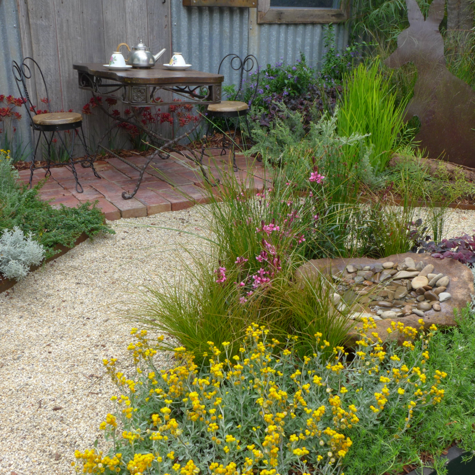 这里看到的小花园是由学生们提交的设计作品,他们来自墨尔本所在的维多利亚州各大学园艺专业。不要因为这些花园一眼看去相对简单朴实就走马观花一笑而过。仔细观察园景的细节,你会从中发现很实用的造园技巧和设计灵感。一道绿篱、一个水池、一条小径、植物配置、花园一角的创意、室外壁炉的安放,总有一处能让你眼前一亮——哈,这个木箱里的香草花园可以在我们自家后院甚至阳台上实现耶!如何在有限的空间内实现花园梦,如何用花草绿植营造出异国风情,如何使用可回收材料打造低碳环保花园,学生们把对这些问题的思考放入了自己作品。这就是可实现的小花园,我们可以印刻在心里,带回家的花园。