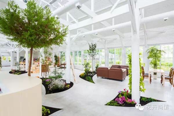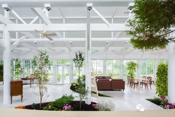 俯瞰tokachi hills花园,你会发现这里有上千种不同的花和树,由日本建筑工作室nadamoto yukiko architects设计。花园最初是作为“蔬菜温室”,最新的设计包括一个入口花园、一个纪念品商店和咖啡馆的开放空间。 “在纪念品商店里,将带有土壤的植物捆绑在一起放在过道上,两棵树静静的站在角落里,它们就可直接作为商品进行销售了。”建筑师nadamoto yukiko说。