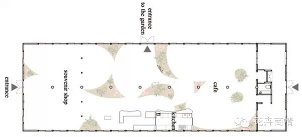 平面图 原先直接裸露在外的结构重新粉刷过几次,最先粉刷的彩色并不令人满意,经过反复的实验终将最后的空间恢复成“纯净的白色”。植物仿佛原本就是从地面生长起来的,精心设计的布局也将tokachi hills与周围的花园联系起来。