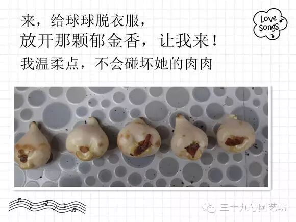 以上图片,全部都是去年我种过了的种球,然后他们都分化成无数的小球了,大小是不一的。有的貌似看着好像很要开花的样子哦,不过我也没试过啦。最小的那种要是能开花,我的脚指头都不信哦。。。你们信吗???注意,这个球不圆,因为他分化了的原因?圆圆的饱满的大球只有那么几个。。。